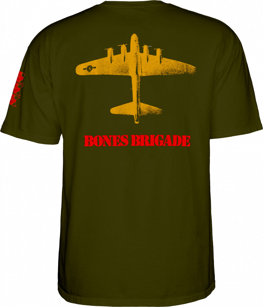 Classic Bones Brigade Bomber graphic. Small front logo, Large logo on back. Three Bomb print on sleeve.
