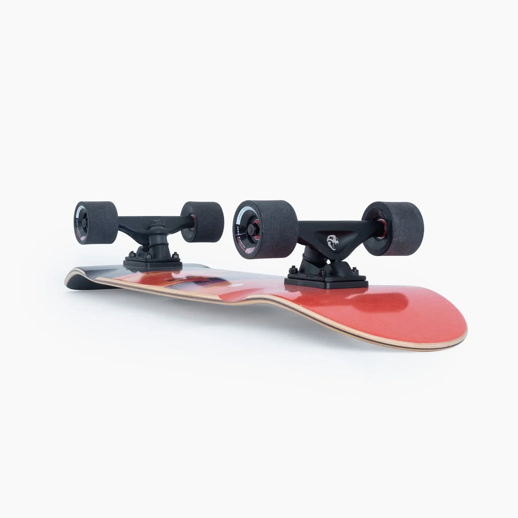 The Slim Jim is just that, slightly more narrow and slightly shorter than our bigger ATV boards with a bit shorter nose and tail than the Perfecto or Stone God. At 31” long and 8.43” wide, the Slim Jim was designed as a compact cruiser for people with places to be and tricks to stomp along the way. The Slim Jim is pressed with 7 plies of Canadian Maple for a light, stiff and poppy ride. It comes complete with Polar Bear 130mm trucks to perfectly match the width of the board and provide the ideal blend of stability and maneuverability. The setup is finished with a set of 60mm 78a Chubby Hawgs wheels to keep the weight down and roll speed up.