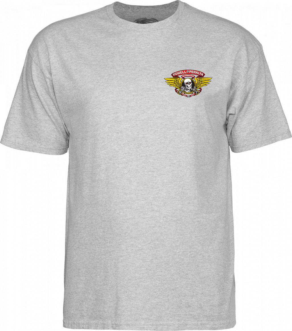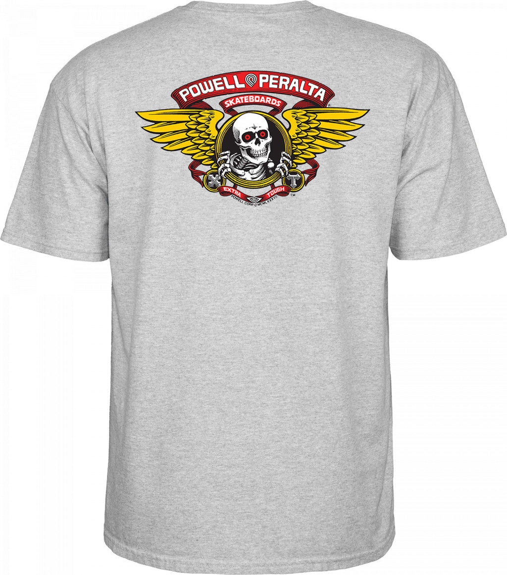 The Winged Ripper graphic was created by artist V.C. Johnson in 1986. Originally it was used as the 1986 Bones Brigade Summer Tour graphic on T-shirts and stickers. Later the graphic was redesigned and used as the top graphic on decks replacing the Oval Dragon. The "XT" refers to Extra Tough Bonite construction, which was later changed to "7-P" When Bonite construction was discontinued.