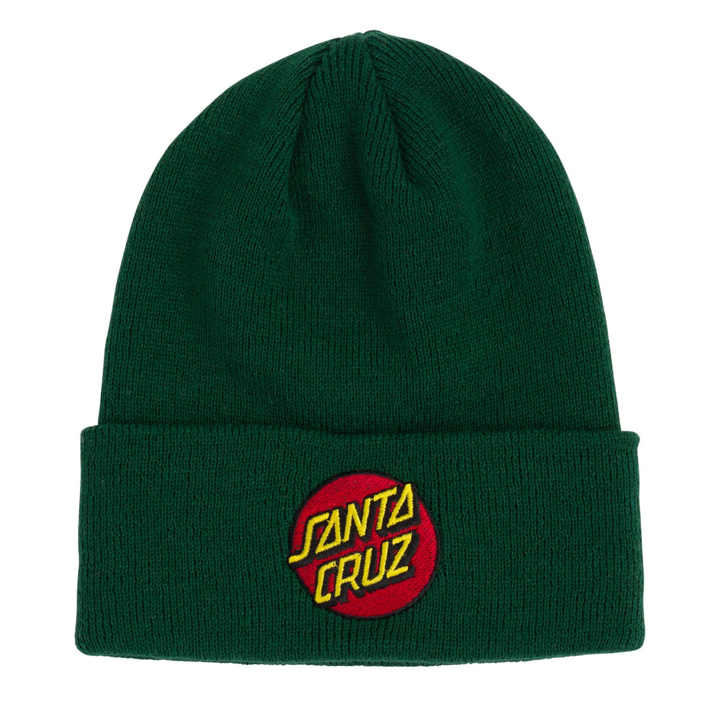 Roll up, stand out and stay warm in the latest hats and apparel from Santa Cruz Skateboards. The Santa Cruz Classic Dot men's longshoreman style rib-knit beanie features Santa Cruz Classic Dot front embroidery. Santa Cruz has been manufacturing iconic skateboards and apparel since 1973. Innovative skateboards and artwork from the beginning 'til the end.