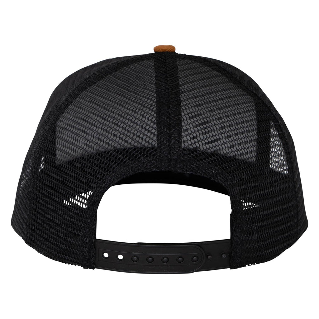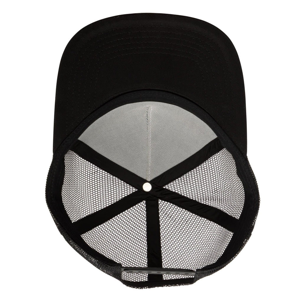 Adjustable high profile 5-panel mesh hat with front screen print.